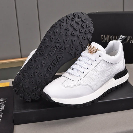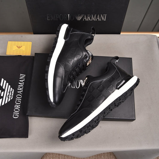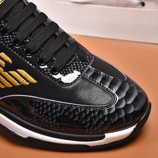 Tenis Arman Preto Casual Couro detalhe Topo e logo dourada