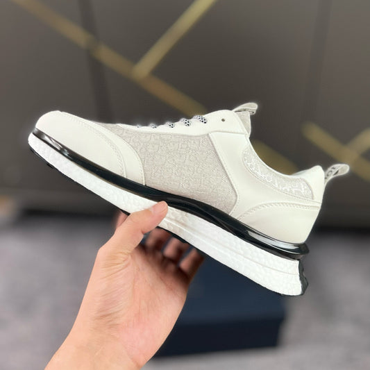 Tênis Dio B57 Branco com Preto e Bege logo canvas