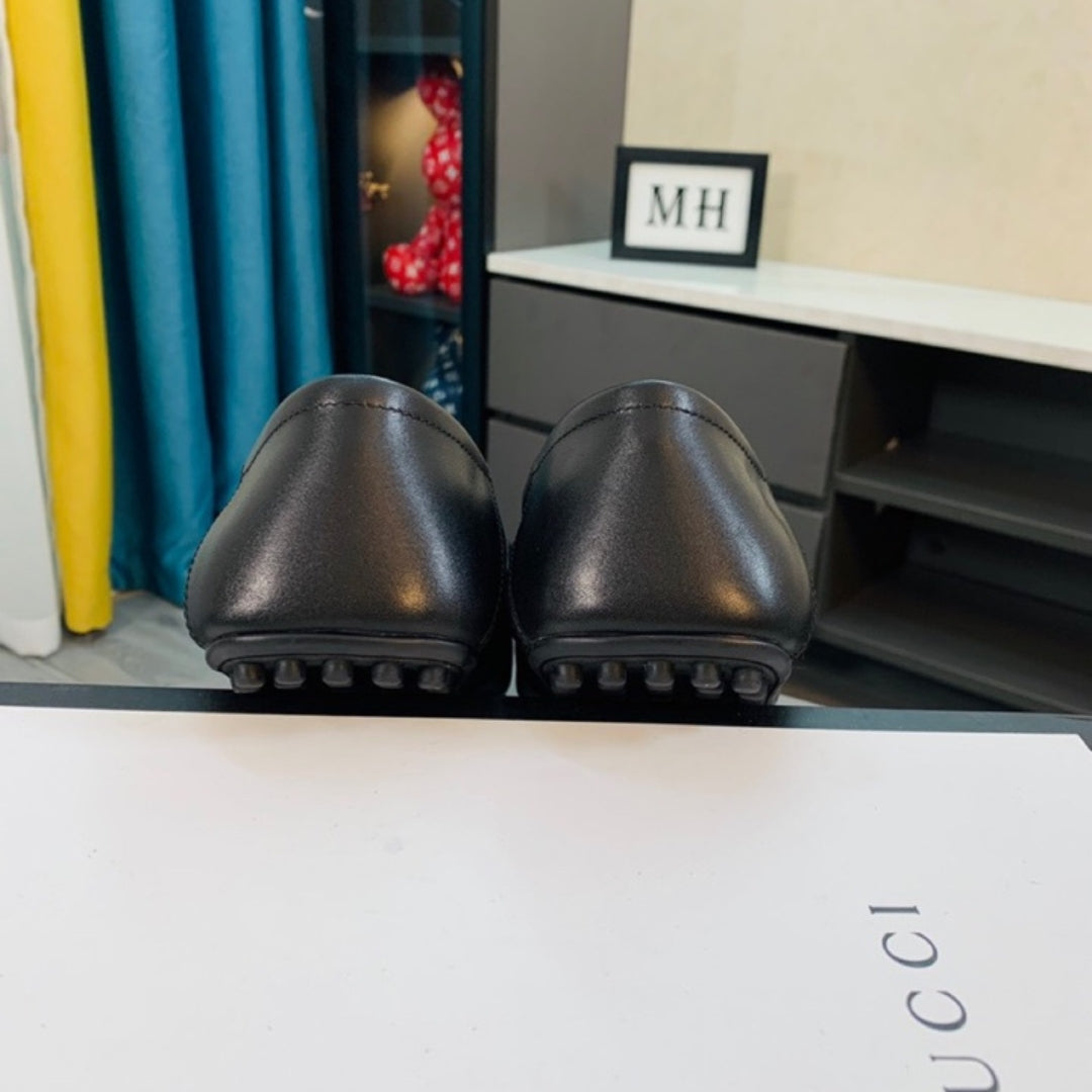 Mocassim GG Preto Couro Faixa e Logo GG