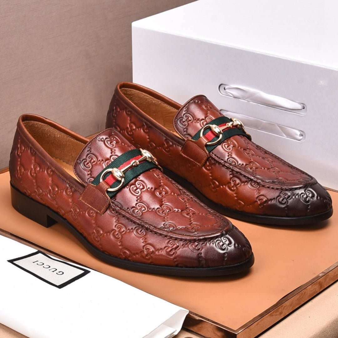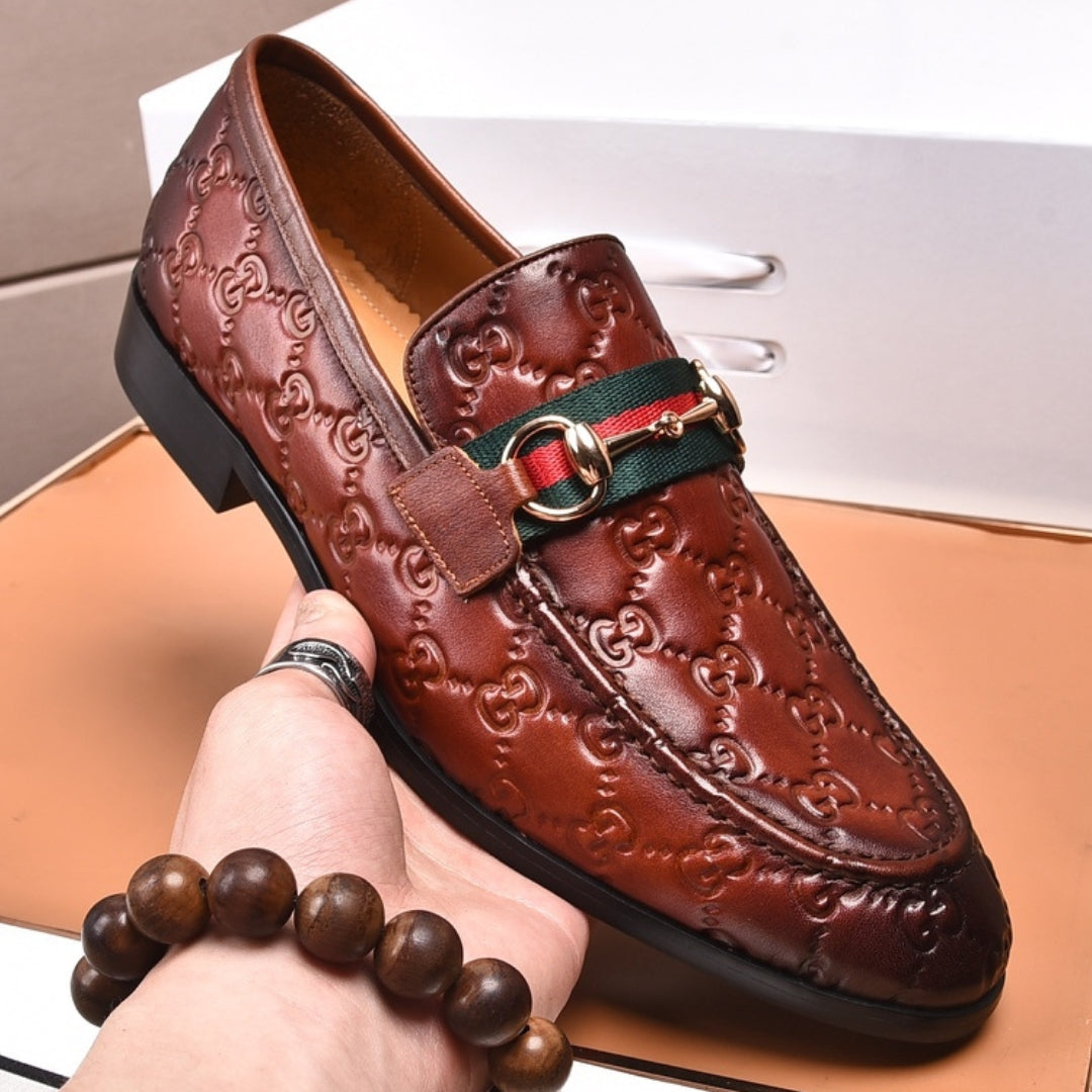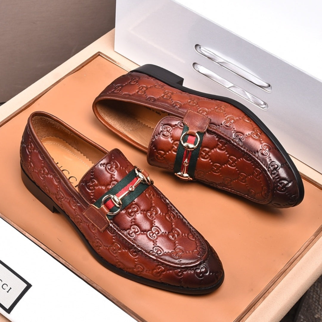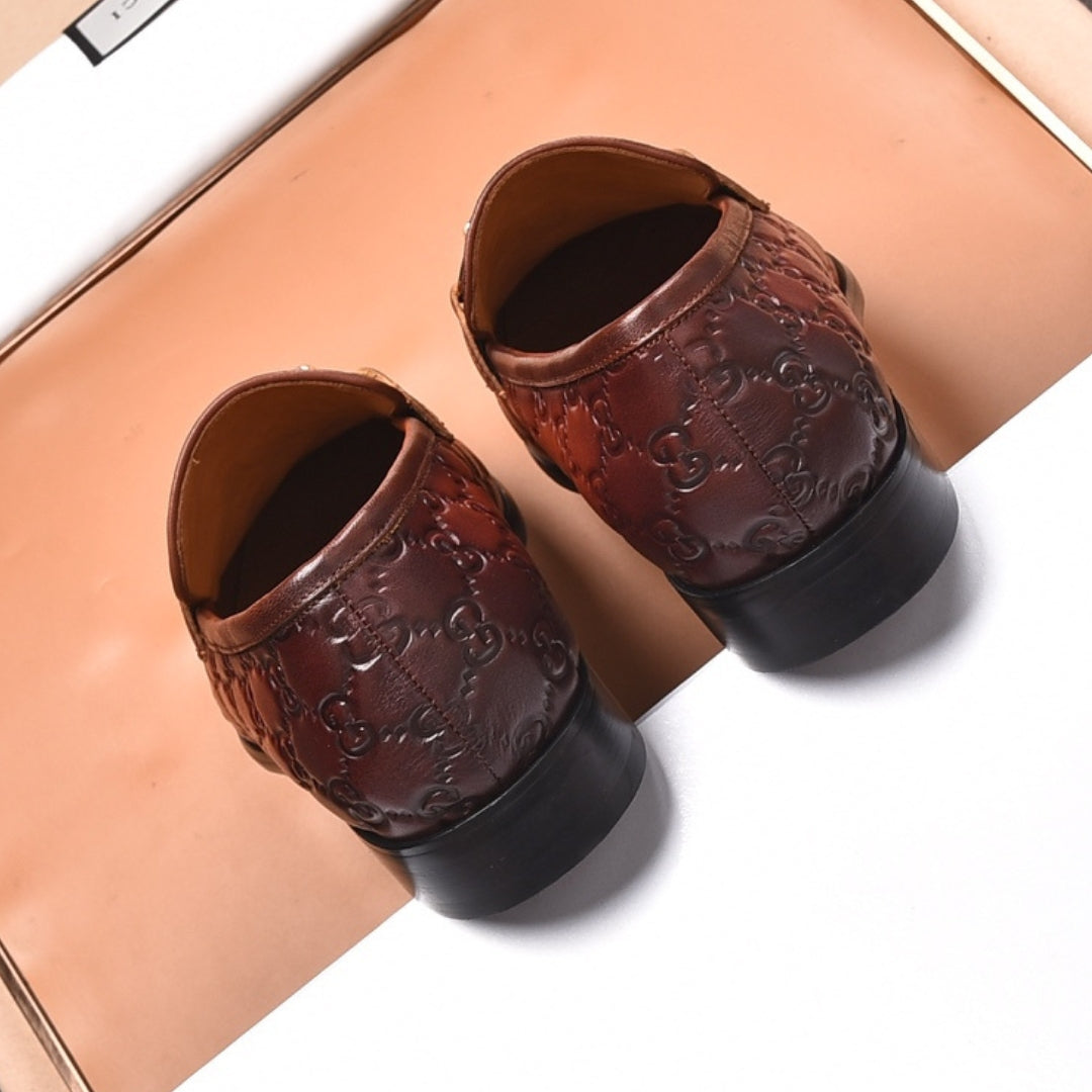 Sapato GG Social Couro Marrom com detalhes canvas e horsebit