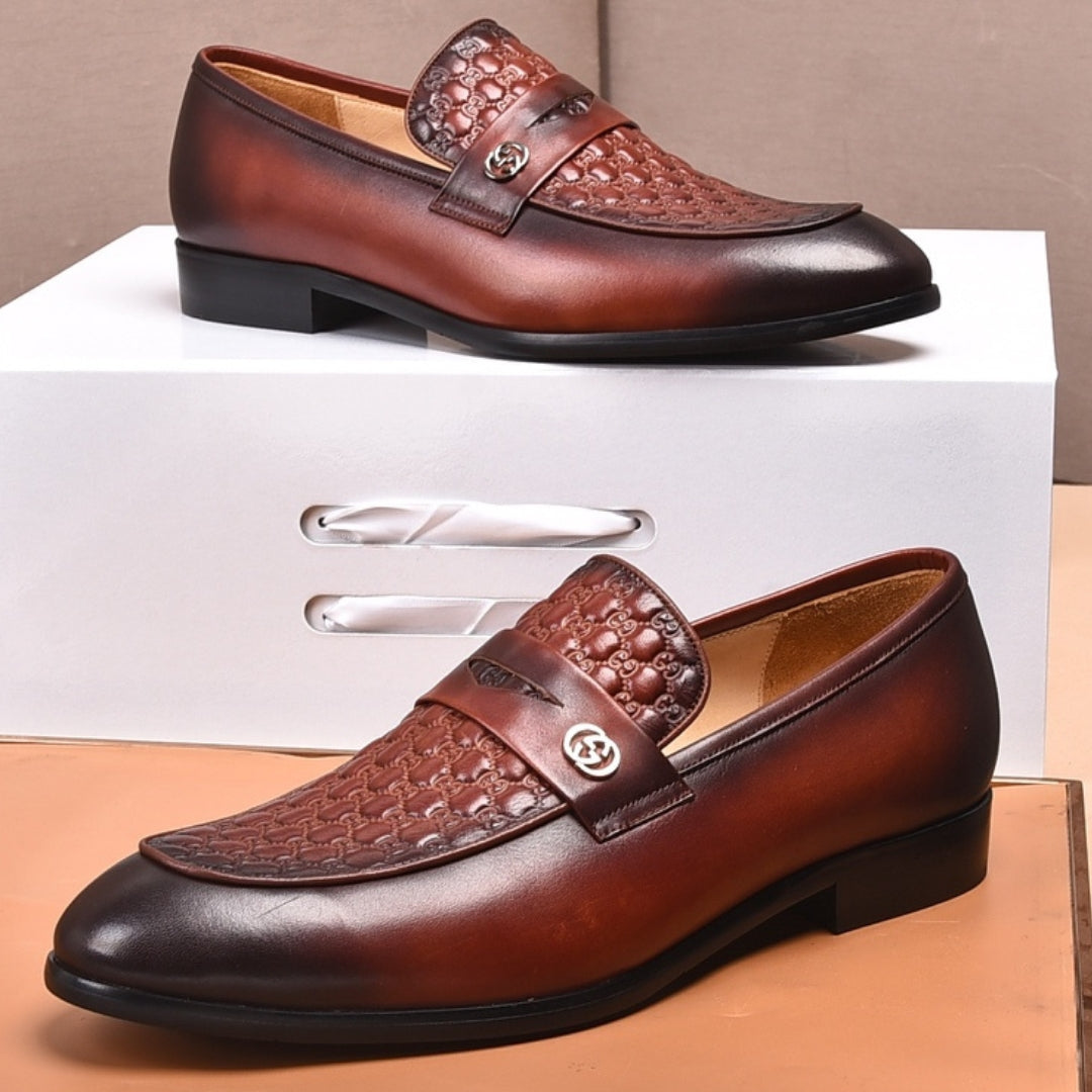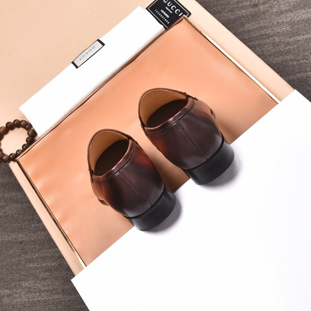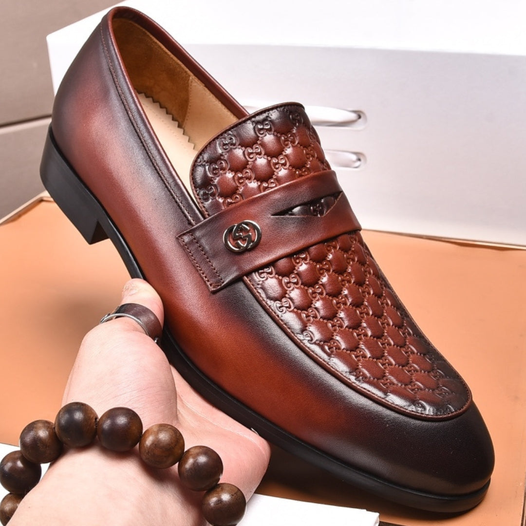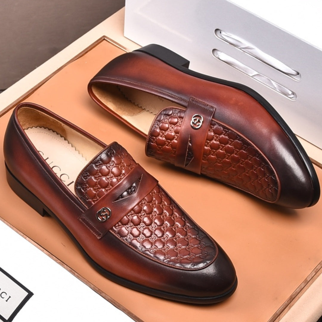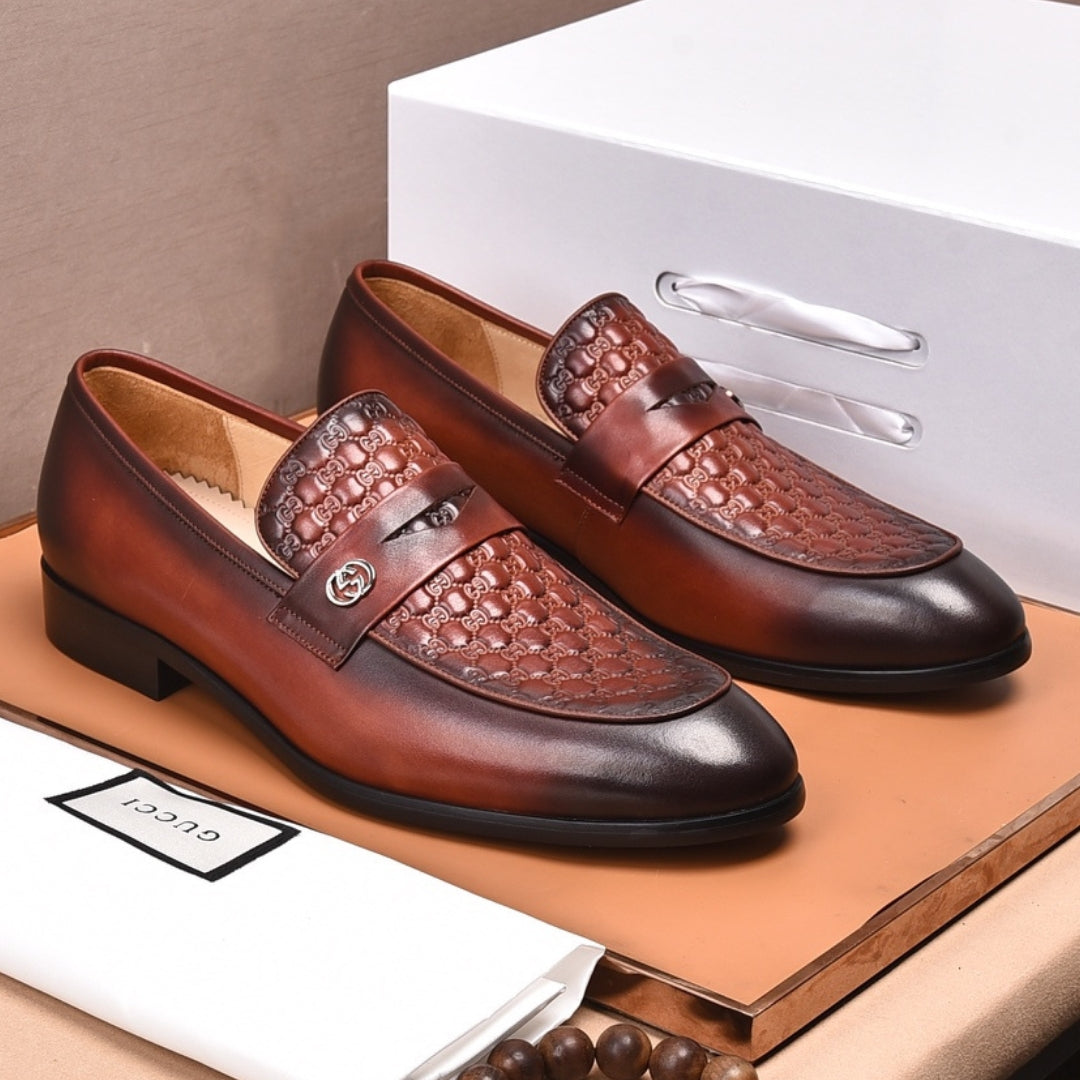 Sapato GG Social Couro Marrom com detalhes canvas logo pequena interlocking lado