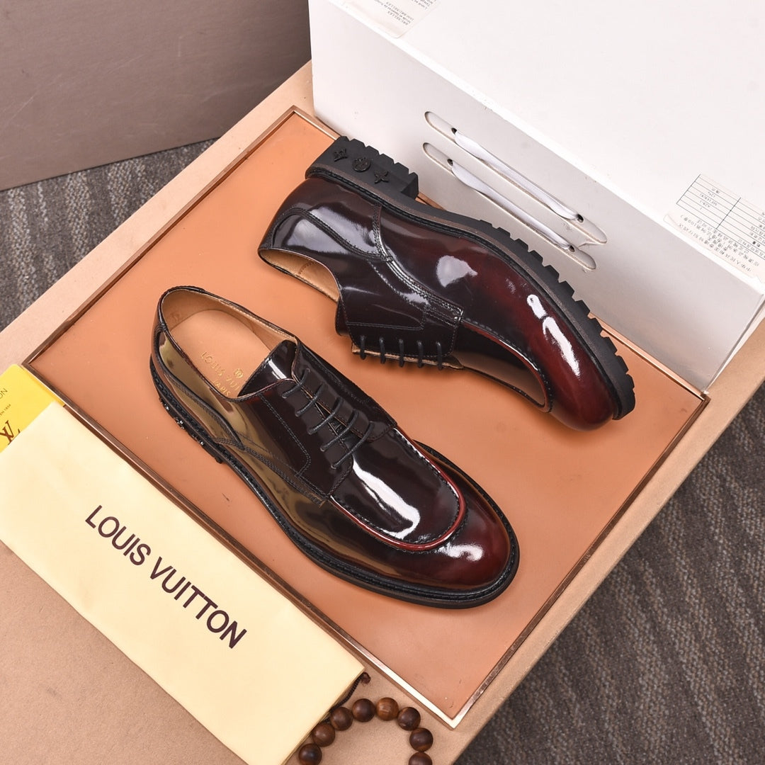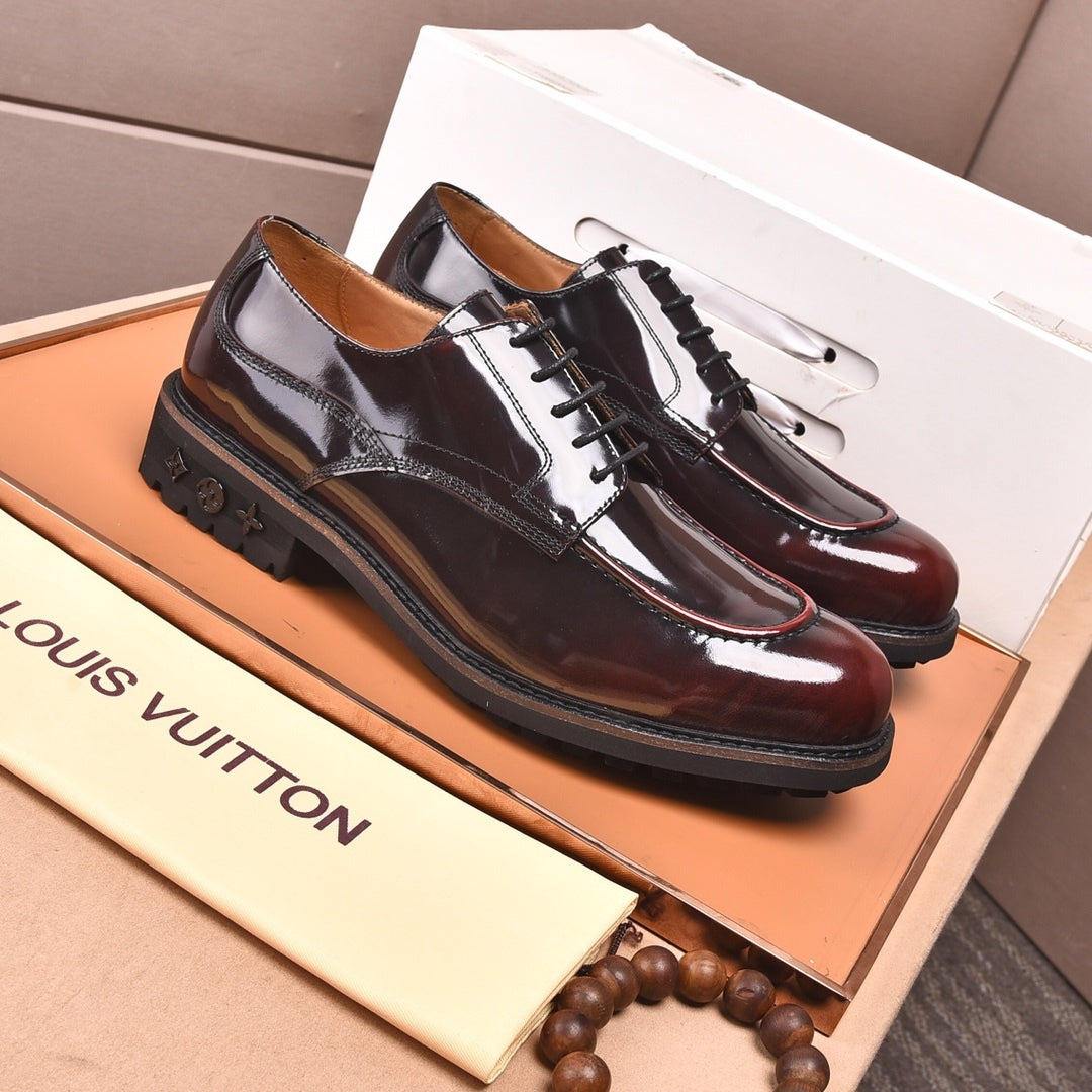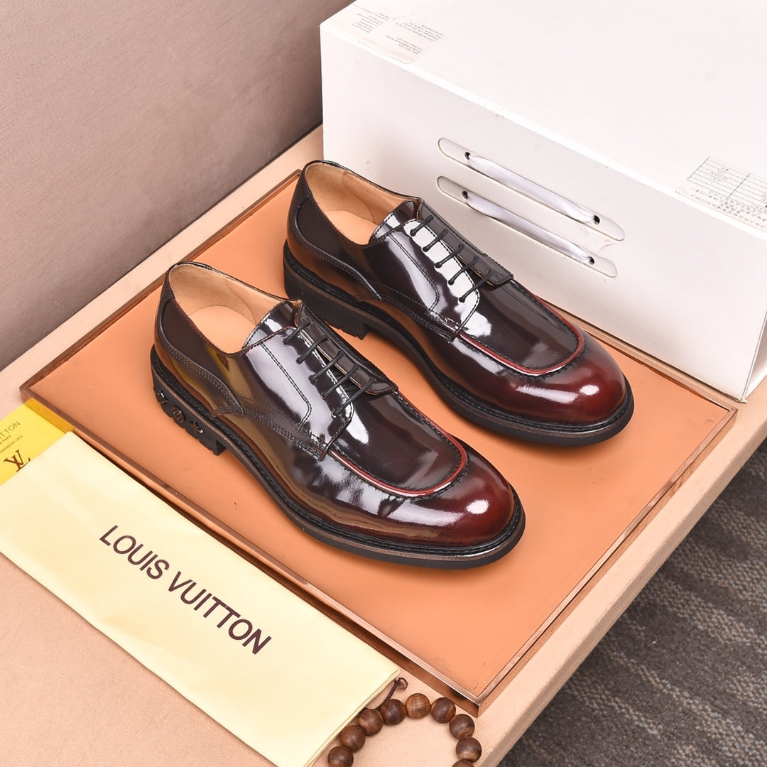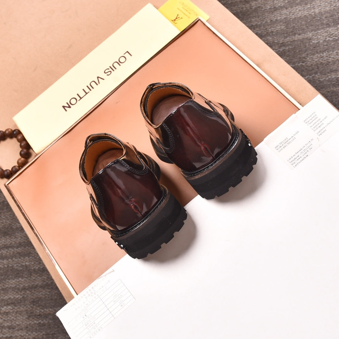 Sapato LV Couro Marrom e avermelhado com solado em detalhes