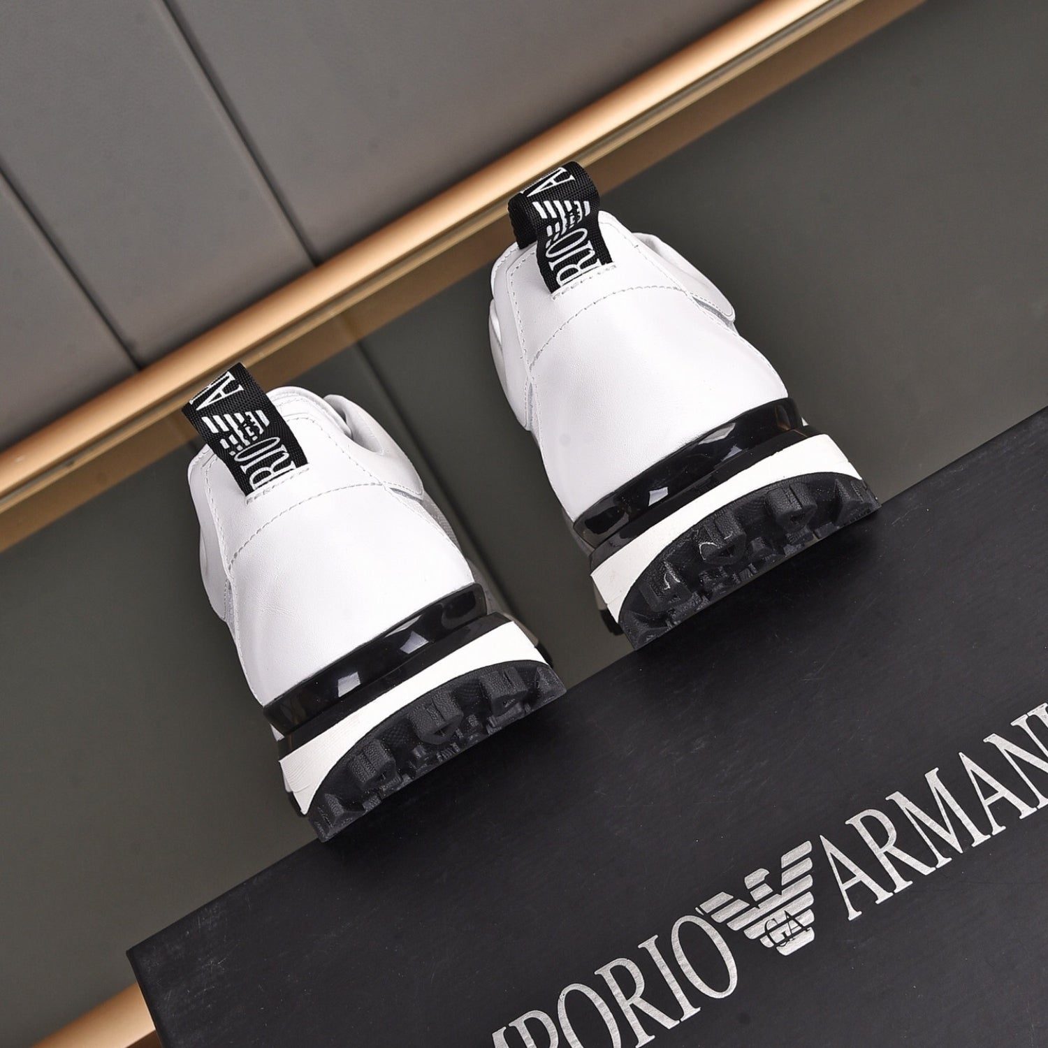 Tenis Arman Branco Couro logo detalhe