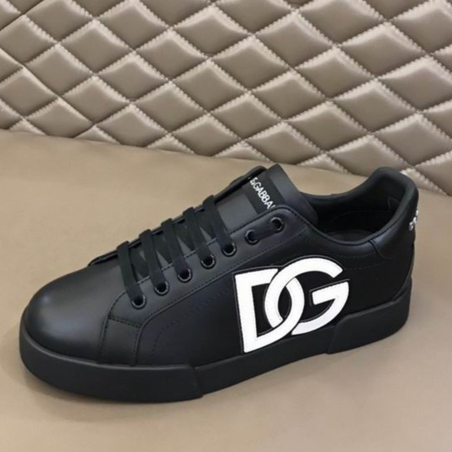 Tenis DG Portofino Couro All Black com Logo Branco Lateral